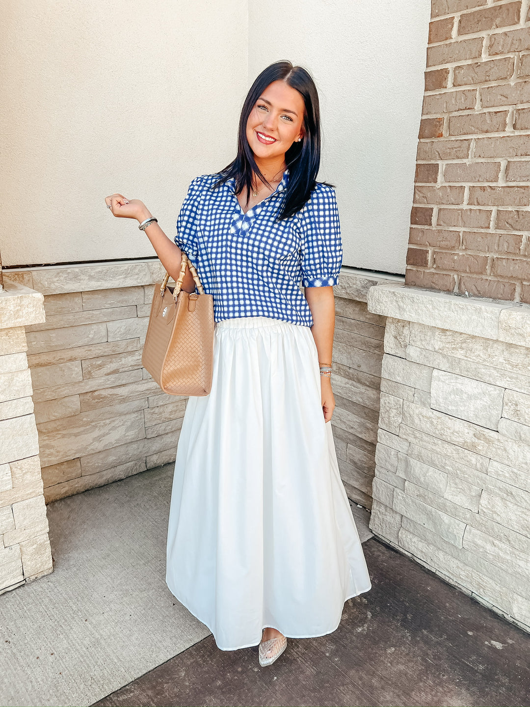 Tricia Gingham Navy Top