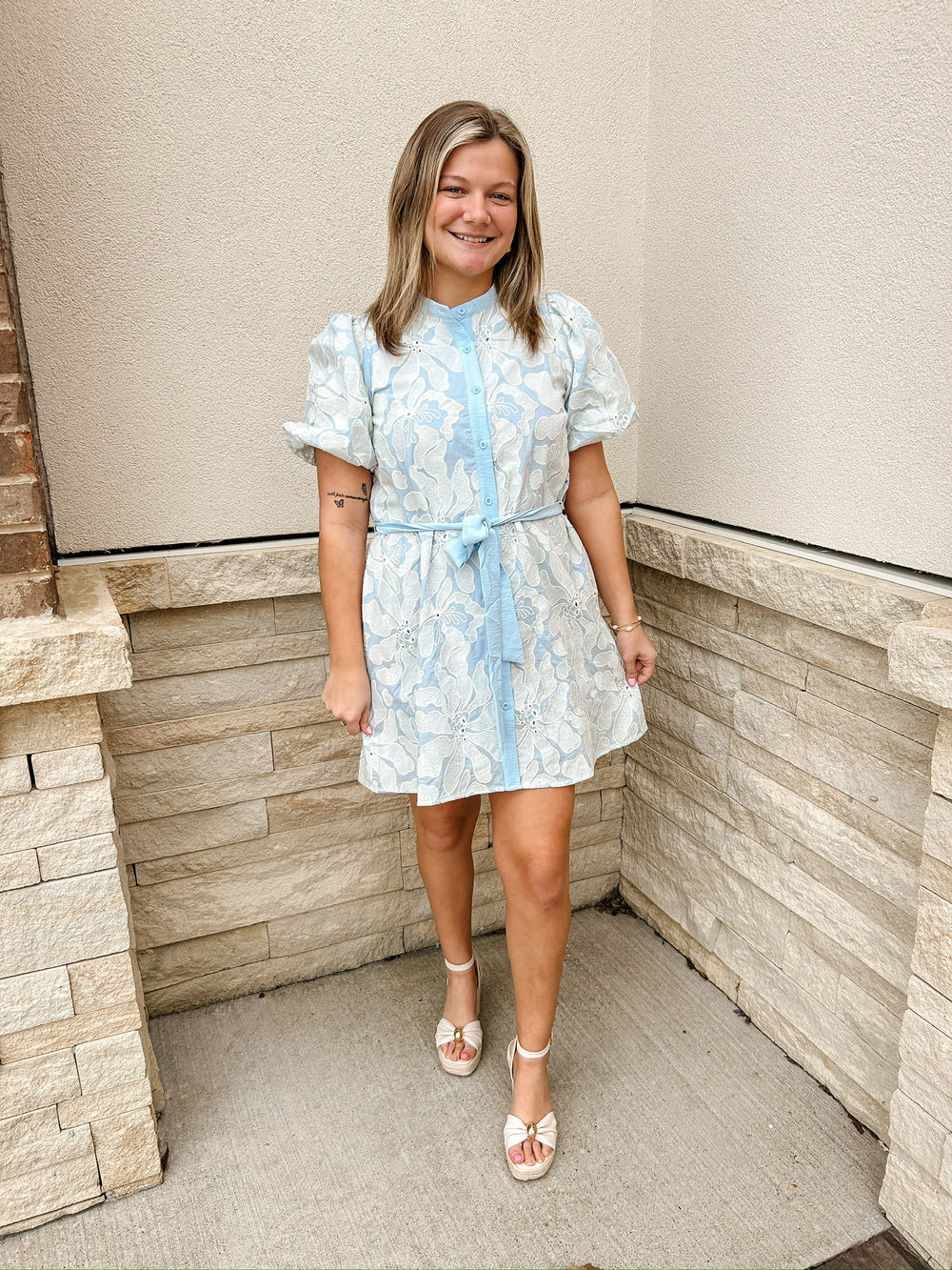 Baby Blue Floral Eyelet Dress