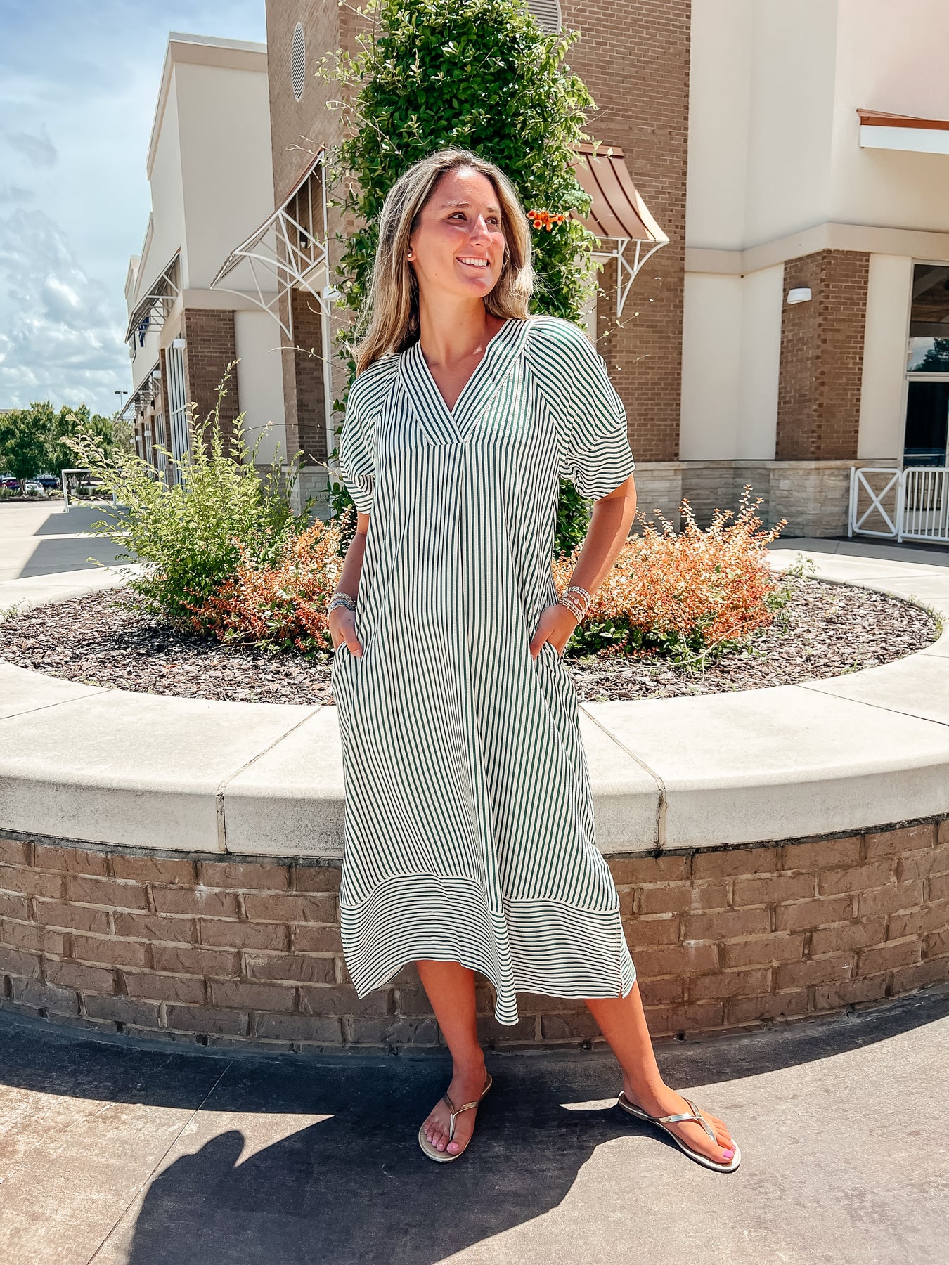 Effortlessly chic and endlessly comfortable, this striped midi dress is your new go-to for laid-back days and casual outings. The short sleeves, side slits, and functional pockets add everyday ease, while the contrasting hem stripe gives it a modern twist.