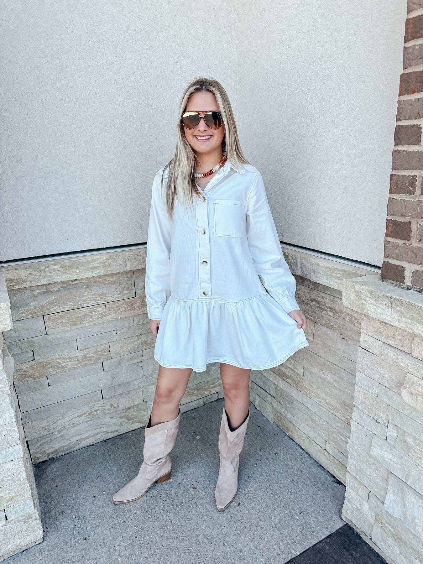 Off White Denim Button Down Dress